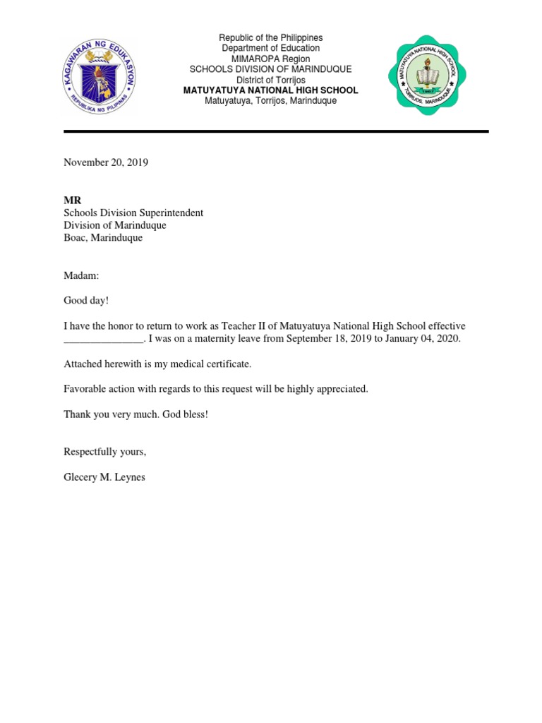 How To Write A Return From Maternity Leave Letter